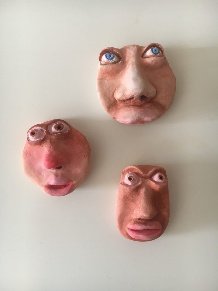 Aber auch plastische Gesichter aus Ton herzustellen, macht mir sehr viel Spaß. Auch hier möchte ich eine Emotion zeigen. Doch nicht nur, denn auch das Schräge darf nicht fehlen.